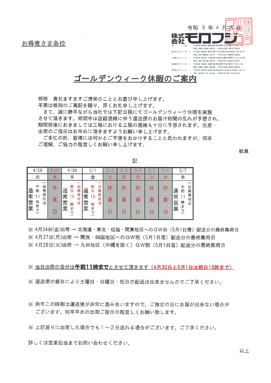 ゴールデンウィーク休暇のご案内